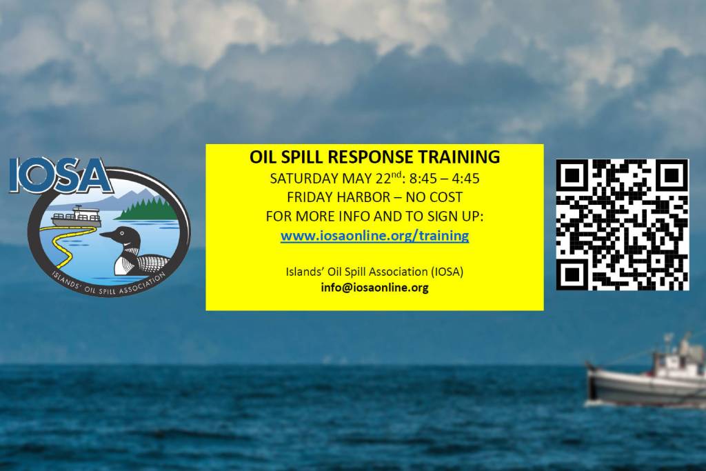 The Islands’ Oil Spill Association (IOSA) is hosting a no-cost training for local oil spill response volunteers. Anyone interested in becoming an IOSA volunteer is welcome to attend, in addition to existing members of the team. The training will be from 8:45 a.m.–4:45 p.m. on Saturday, May 22 in Friday Harbor. Space is limited.