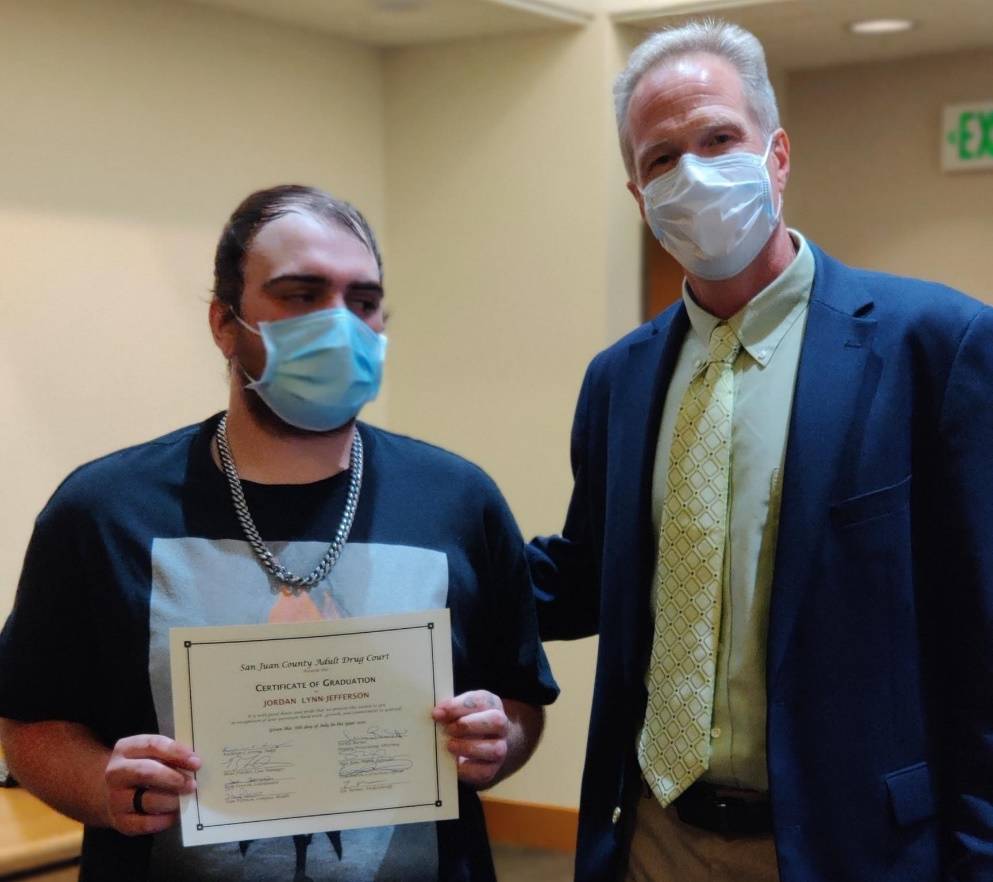 The San Juan County Adult Drug Court awarded its first Certificate of Graduation to Jordan Lynn-Jefferson of Orcas Island on July 7, 2021. After 697 days or almost 24 months in the County’s therapeutic program, Jordan emerges a more self-confident and mature young man with goals for his life, and tools to maintain his stability and sobriety.