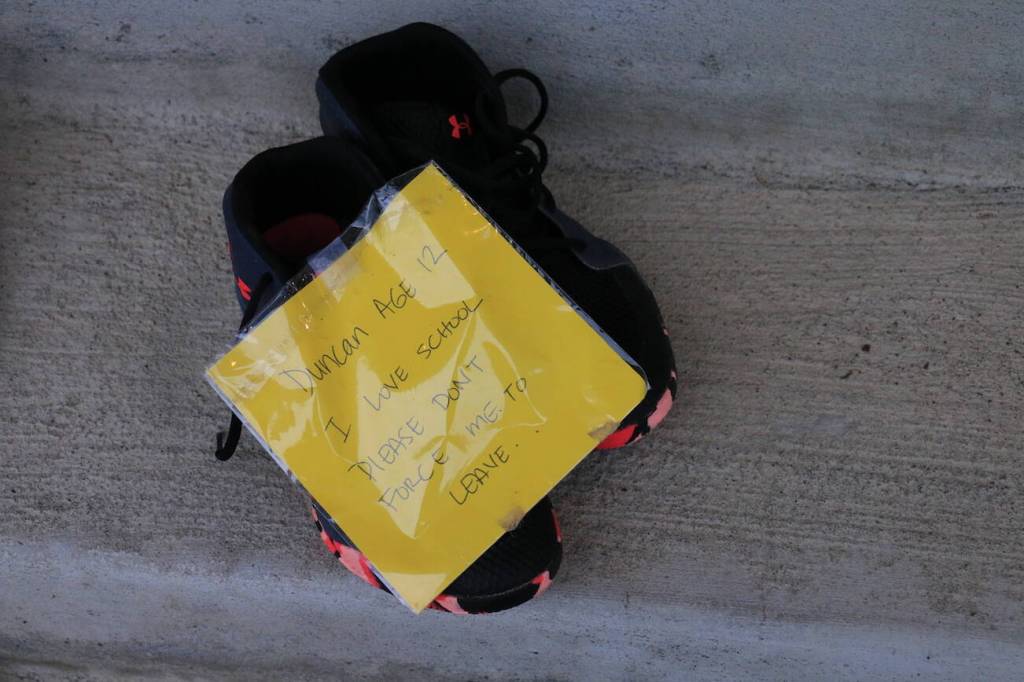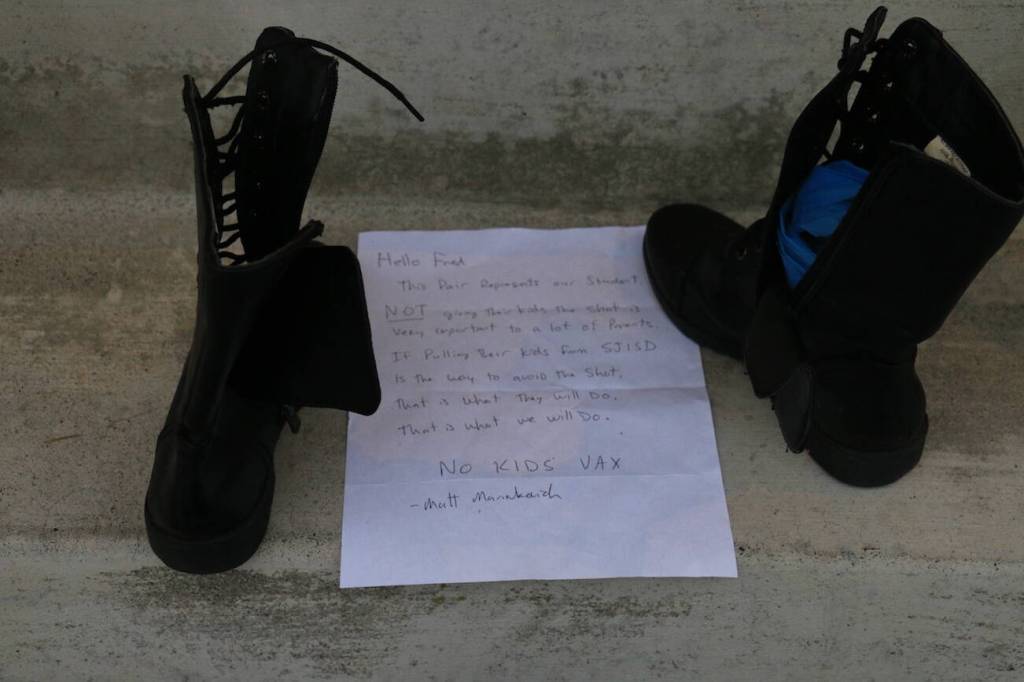 Parents and students participate in ‘shoe demonstration’ against school vaccine mandates
