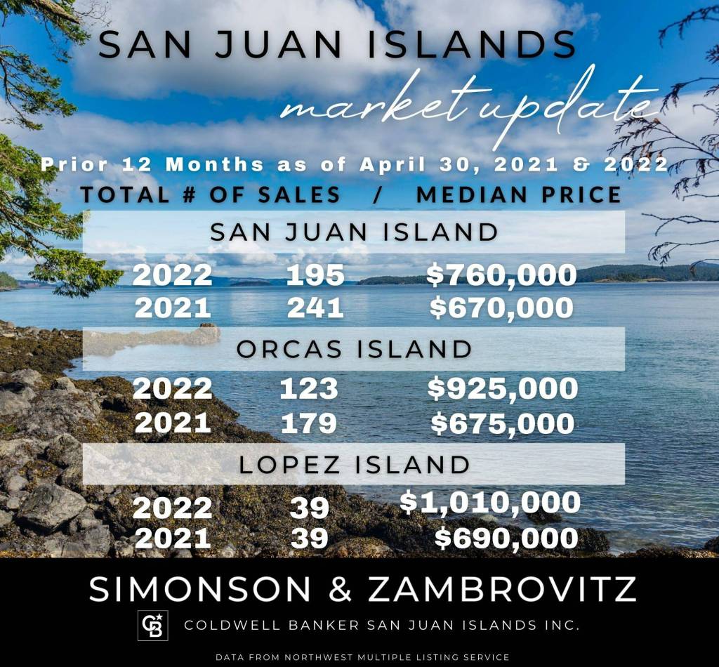 Here is the April 30, 2022 Market Snap Shot from the Simonson & Zambrovitz Team at Coldwell Banker San Juan Island. Lopez is extremely high just due to the few sales that they have had.