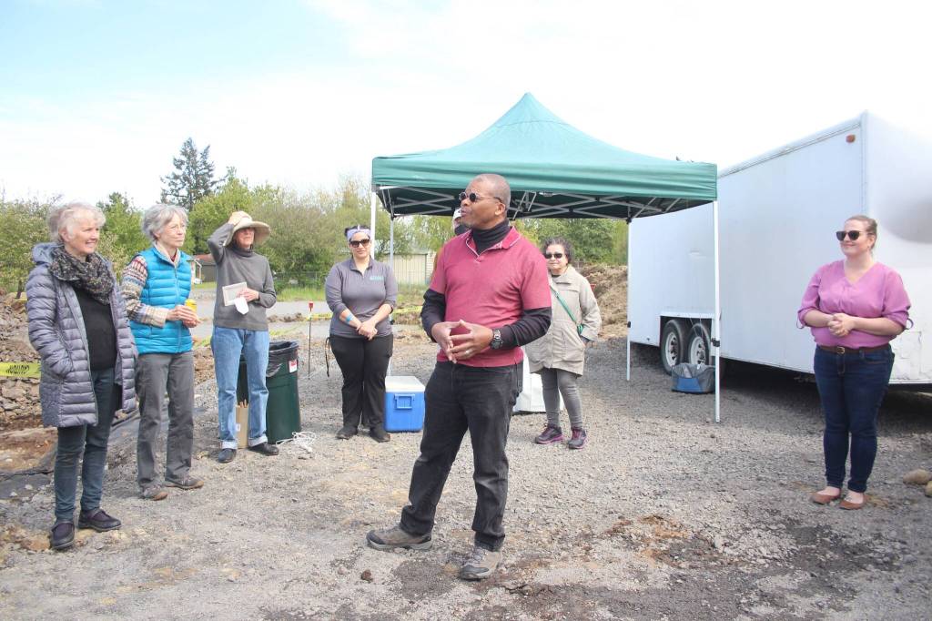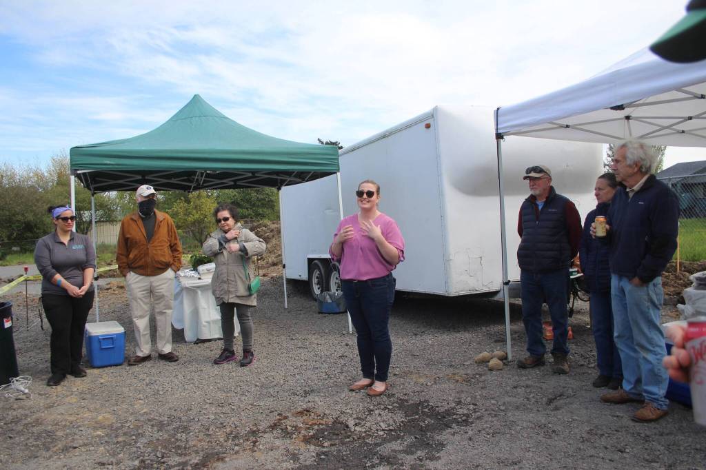 Approximately 30 people gathered in the afternoon of May 7 to celebrate breaking ground for the San Juan Community Home Trust’s latest project, Holliwalk on Price Street in Friday Harbor.