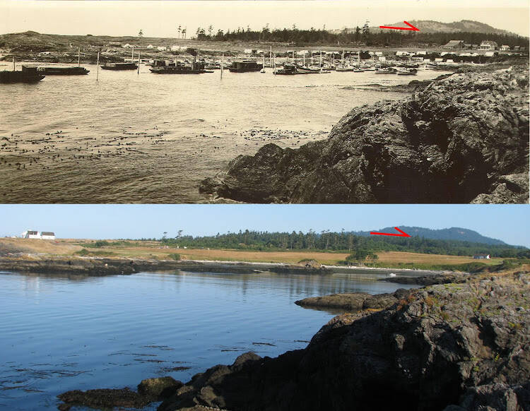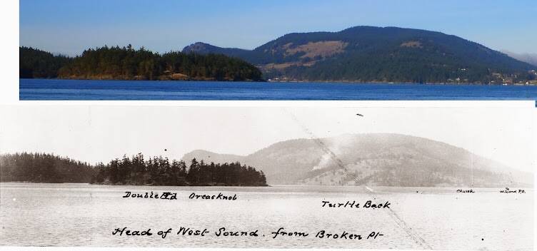 To illustrate the difference between the past and present, McCutchen and historian Boyd Pratt replicated historical photos of Mount Dallas and Turtleback Mountain, and Kellett Bluff among others.