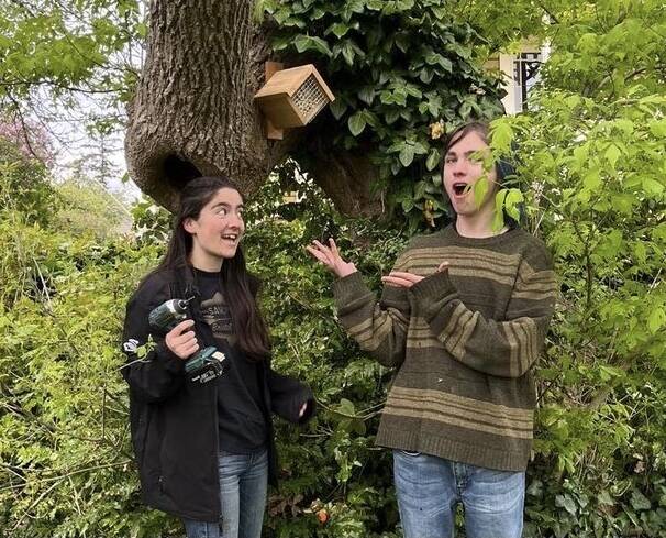 We are at that time in our lives where it is our responsibility as juniors of Friday Harbor High School to work on a community project and give back to the island that has supported us our whole lives. Ms. Wilson has been guiding the class of community projects this year. Satchel Bourne and I, Lucy Marinkovich, studied mason bees, and worked on creating bee hotels for them to live in around the island.