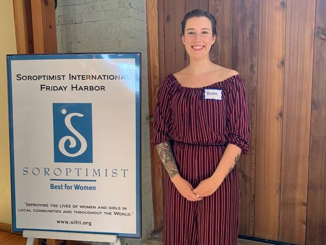 Barbara Sharp presented Brooke Radcliffe with the award. Radcliffe works with Safe San Juans as well as in the San Juan Island elementary and middle school to educate students about personal boundaries. She will be working toward a master’s in art therapy.