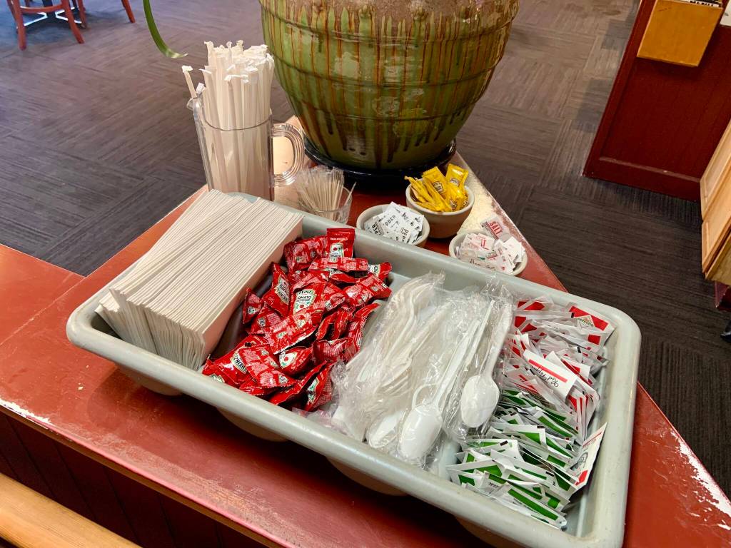 To receive a single-use food serviceware item, customers must request it, confirm their choice when asked, or select the item they want from a self-serve station. Customers are also encouraged to bring their own durable, reusable food containers, utensils, and straws to help reduce single-use waste.