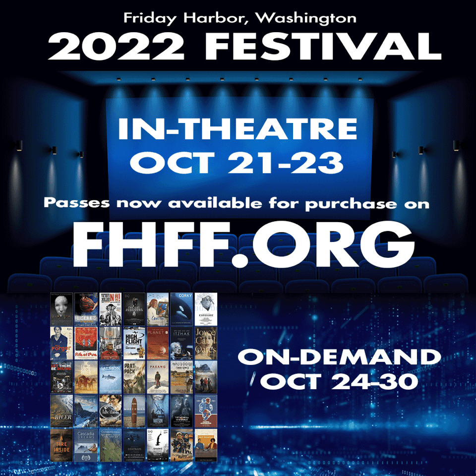 It’s time to make your plans for the Friday Harbor Film Festival coming up Oct. 21-30. Passes are now available on the fhff.org website for both the In-Theatre and the On-Demand Festivals. The full film guide is online, providing details of all the feature documentaries and short films to be shown.
