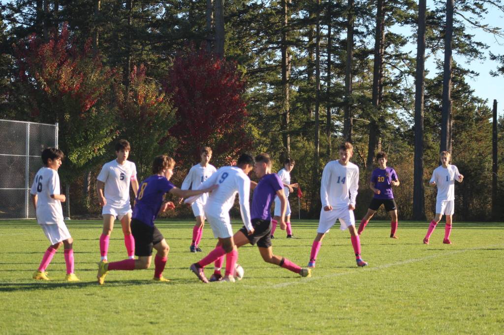 Orcas equalized the score only six minutes later off a Friday Harbor clearance and a quick counter-attack. Less than two minutes after Orcas’s 1-1 equalizer, Owen Conde Raggett played a quick two-pass give-and-go with Alden Carli who played a through ball back to Owen Conde Raggett to make the score 2-1. At the 32-minute mark, Orcas equalized a second time off a corner kick making the score 2-2. “Four goals back and forth between both teams within just 15 minutes made for quite the emotional rollercoaster for anyone watching on the sidelines,” Brett Paul said.