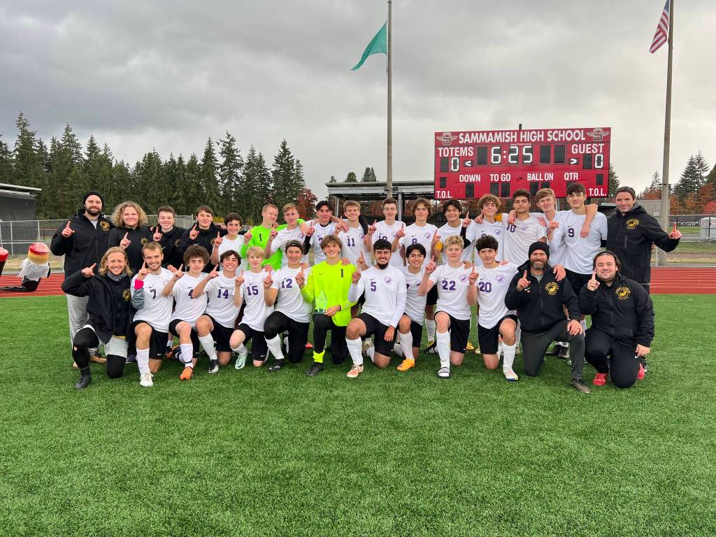 The championship took place this past Saturday at Sammamish High School. Orcas got ahead 1-0 with a cross-goal pass and a really nicely placed shot by Vikings #1, Sam Sutton. Wolverines #7 Colby Border won the ball in a scrum at the half and broke free, finding #8 Owen’s feet. Owen maneuvered efficiently down the right side then crossed the ball into Orca’s box to #6 Alden Carli. Alden brought the ball down to his feet, broke free of his defender, and found the corner net, equalizing the game. The score remained 1-1 through the end of regulation and 2, 5-minute halves of overtime. We went to PKs where both goalies Luke Totten and Paxton White had some incredible saves, going 8 rounds and each team being in a position to clinch the game at different points in the shootout. Cole Curtis, our 8th shooter, buried his PK confidently followed by our goalie, Luke Totten, making an incredible diving save to finish the game with a final score of 6-5. It’s the first time in our program’s history to win a district title. It was a pretty fun moment to share with the team who have worked so hard to get here – and really fun to share the moment with our fans and the rest of the community who have supported these guys all season long. The win also puts us in a good position as we go into the state tournament.