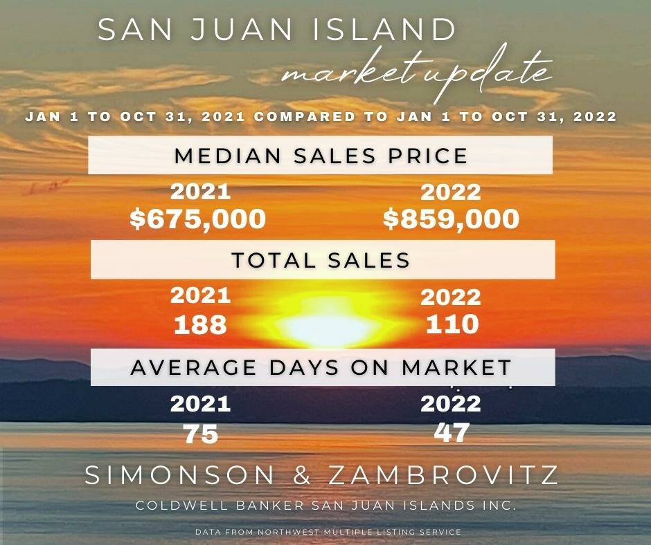 Here is the Market Snap Shot for the end of October from the Simonson and Zambrovitz Team at Coldwell Banker SJI. The median price for homes has yet to adjust to the lower volume for closed and pending sales. It may take a few more months to reflect our current market as the data lags.