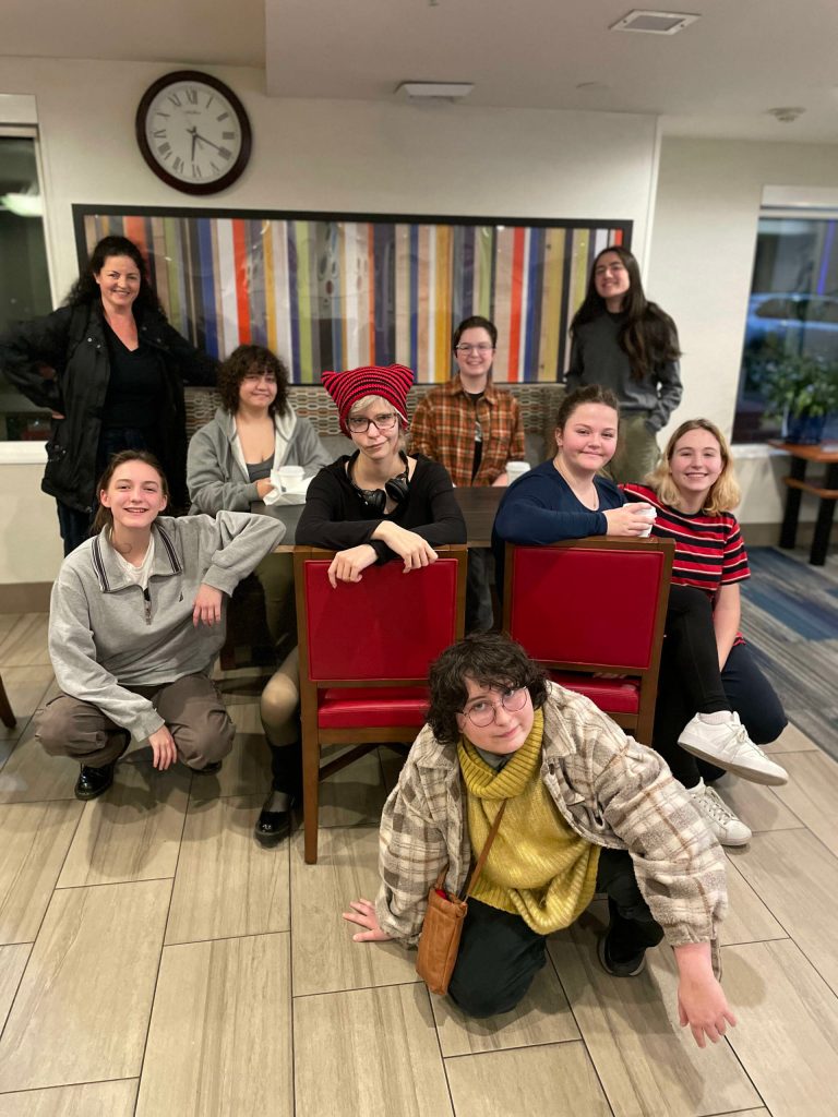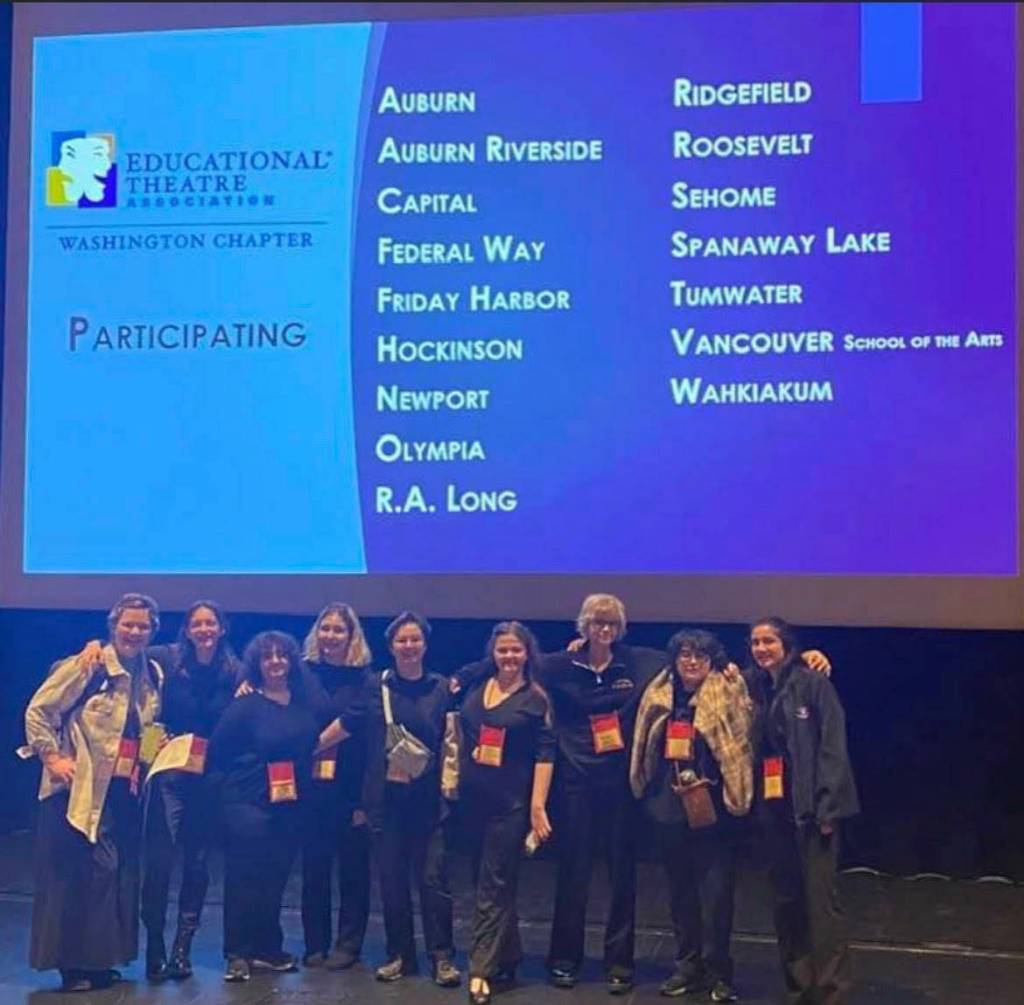 The Friday Harbor Thespian Troupe is very proud to announce that Troupe 8244 had a very successful outing to the regional Thespy event on Saturday, Jan. 14. Seniors Sidney Herda, Lucy Marinkovich, and Shelby Mullin, Junior Benji Evered, Sophomores Kira Clark, Vincent Sanders, and Jax Heath and Freshman Alison Power traveled to Olympia to perform for adjudicators and meet with high school theatre students from around the region. Our students had a great time touring the Capital High School facility, networking with students from other troupes and cheering each other on as they presented songs and monologues to fellow students and the adjudicators.