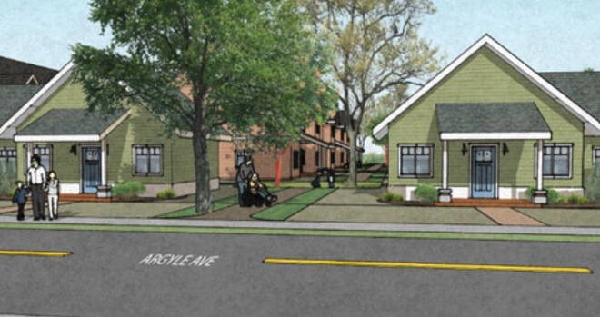 The design, he pointed out, is characterized by front porches and front doors. The houses include primarily one-bedroom and studio units with a small number of two-bedroom units mixed in. “We selected that unit mix based on the market study that we expect will say that’s the demand,” added Eberhard. “That’s certainly what we’re hearing, and it’s also the trend in affordable housing at the moment.”