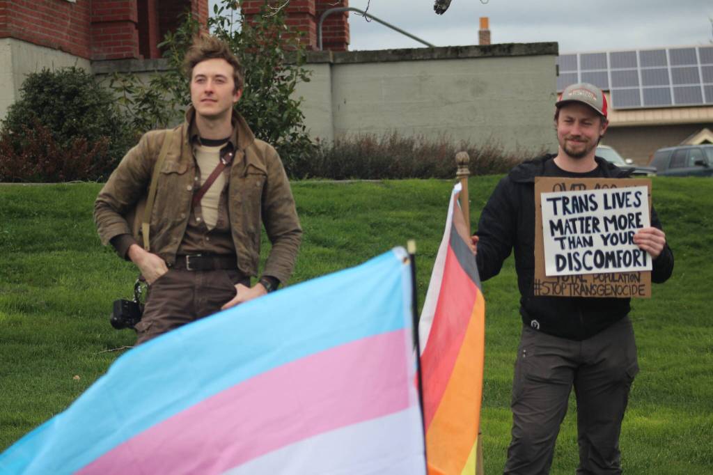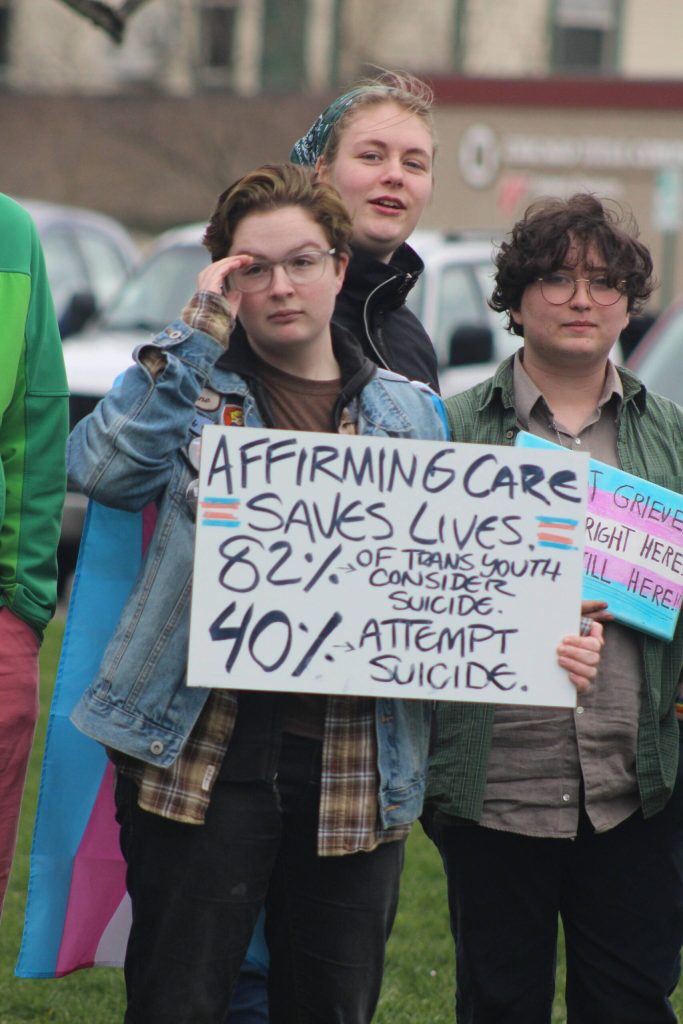 “We are here because right now there are over 400 bills that are anti-trans, and there are kids that need support. All of the anti-trans legislation can’t stop us from existing” event organizer Bo Brown said.