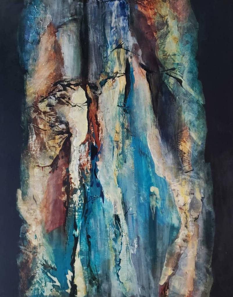 “Acrylics allow you to paint fast and create a lot of effects,” Allison said. From using a squeegee or credit card to push the paint around, to texturing with spritzes of water, Allison’s work encompasses new ways of looking at the world.