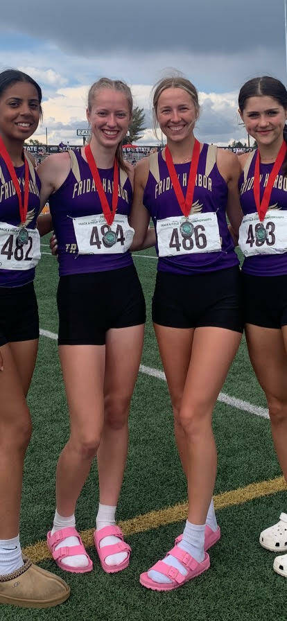 Led by coaches Shannon Plummer and Willie Blackmon, the Friday Harbor Wolverines Girl’s 4 x 100-meter relay team took 2nd Place in State! The relay runners McKenna Clark (11), Mia Blackmon (12), Stella Carli (9), Ari Tucker-Belt (12) came in with a time of 52.50.