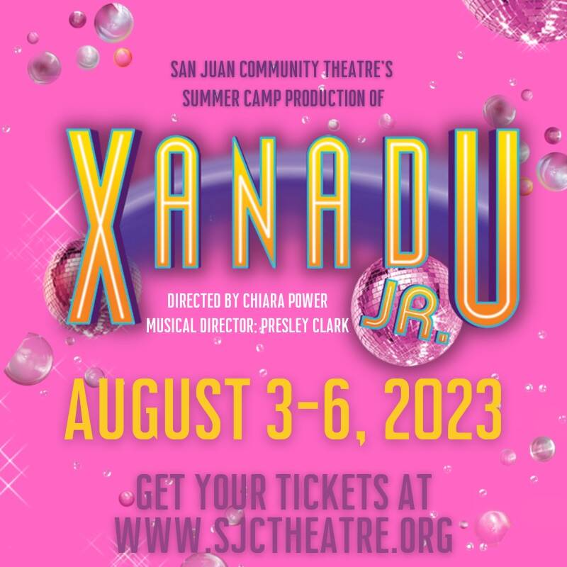 Friday Harbor, you are invited to crimp your hair, flip up your collars and rock some legwarmers in celebration of San Juan Community Theatre’s camp performances of the pop-rock musical comedy Xanadu Jr., beginning Thursday, Aug. 3! This light-hearted jukebox musical is fun and entertaining for kids and adults alike and it will be hard to resist dancing along to all the catchy tunes. So, get your tickets now and prepare to be amazed at all that these kids accomplish in just three weeks! The show runs Thursday through Saturday at 7 p.m. and Sunday at 2 p.m. through Aug. 6. Tickets are $10 for adults and $5 for students. Thursday is pay-what-you-can admission at the door. To purchase tickets, call our Box Office at 360- 378-3210 or visit the website at www.sjctheatre.org.