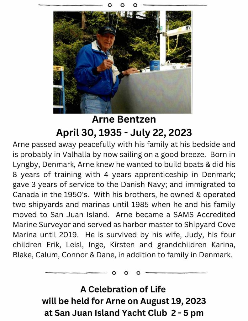 A celebration of life will be held on Aug. 19 at the San Juan Island Yacht Club from 2-5 p.m.