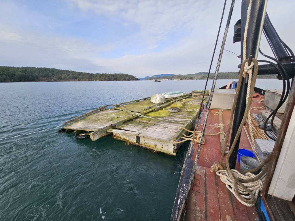 the removal of two derelict structures from local bays. Former sections of docks and floats located in Judd Cove on Orcas Island and Blind Bay on Shaw Island were abandoned, posed navigational hazards, and threatened the marine ecosystem. The structures were