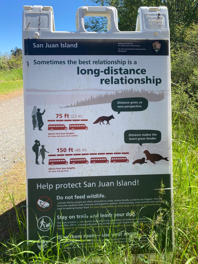 The Park’s response to the rising number of incidents over the last few years has been to de-escalate heightened tension by taking a step back from head-to-head conflicts and instead increasing protective measures such as implementing better signage and building higher fences in the prairie. In fact, the primary reason for protecting these fenced-in areas is because it is habitat for Island Marble Butterflies. According to Hodge, there are roughly only 500 of the butterflies left, and their habitat in the Historic Park is likely their final resting ground. The Park staff put up the fencing and improved signage last year, and Hodge remarked that the Park has already experienced less instances of visitors getting too close to wildlife.