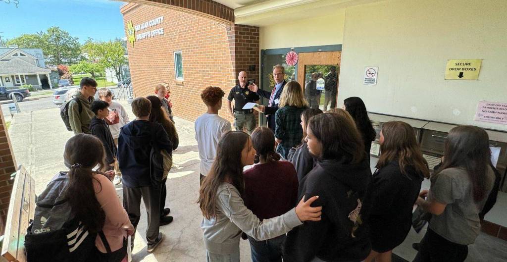 San Juan County District Court invited seventh-grade students from across the county to participate in their first Law Day celebration. On May 15, 2024, sixty-five students from Friday Harbor and Orcas Island visited the courthouse and participated in law-themed activities hosted by San Juan County Law and Justice departments, including a mock trial, career panel, civics lessons, games, and tours.