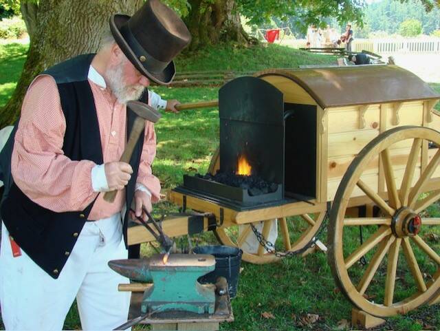 Members of Battery D bought a canopy for the volunteers and organized a field kitchen for the actors. They were also incredibly skilled at period craft work. The group built a traveling forge replicating what the US Army would have had to shoe horses. They even made the wagon wheels.