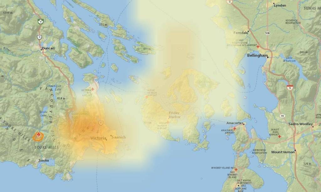Small wildland fire West of Victoria, BC may bring some smoke to San Juans