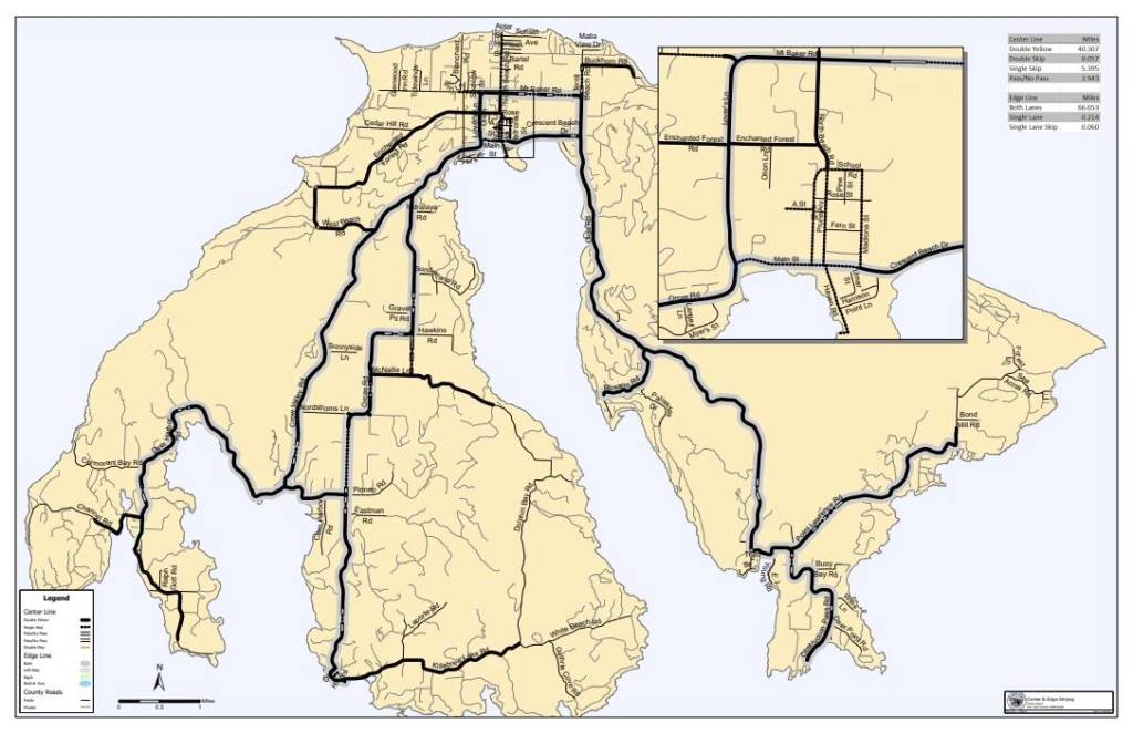 Striping is expected to begin on San Juan Island on Monday, August 5 and last for approximately three days. Crews will then move to Orcas for approximately two days. Beginning on Monday, August 12, crews will begin striping on Shaw Island before moving to Lopez Island.