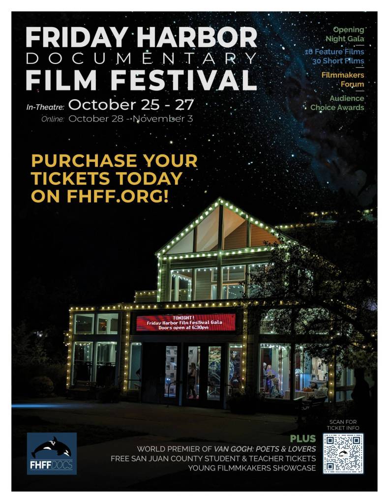 To make attending the 12th Friday Harbor Film Festival affordable to residents of all San Juan Islands, the Festival is offering discounted tickets to view the exciting new documentaries coming to San Juan Island theatres on October 25-27. Purchase your Locals 6-Pack of in-theatre tickets for only $60, a saving of $15 over the regular price. Also available are single tickets and tickets to the Opening Night Gala Honoring Filmmakers. All tickets are available at fhff.org/tickets.