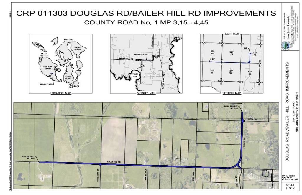San Juan County’s Public Works Department is preparing to advertise to bid the Douglas/Bailer Hill Road Improvements Project this month. The County expects to evaluate bids at the end of January and determine if the project can move forward. In the event the County is able to proceed with the 1.3-mile-long project, the department is pleased to share the preliminary scope, timeline and accommodations.