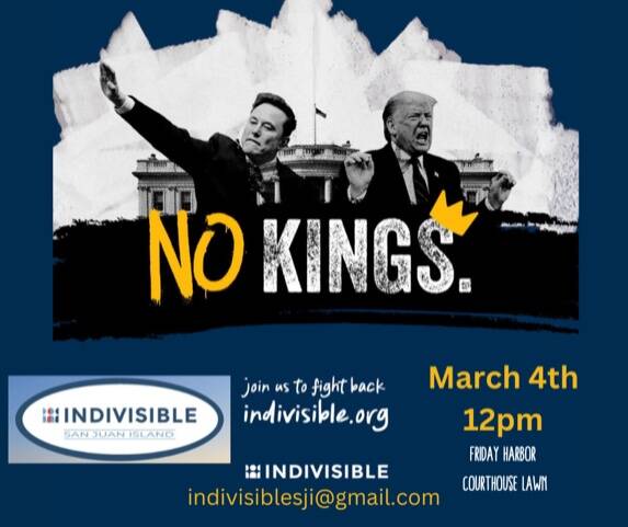 A group of islanders has started once again, since the last Trump administration, for the local Indivisible San Juan Islands. All invited! As you know, a peaceful protest is set across all 50 states this Tuesday, March 4, at noon, local time in Friday Harbor. Meet at the Courthouse Lawn with your signs!