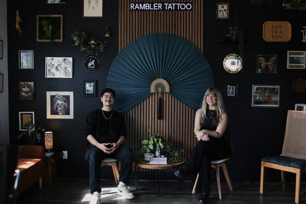 Hollan and Schultz, originally from Las Vegas, have spent the last five years traveling as tattoo artists and found themselves running a successful pop-up in Friday Harbor last July. It went so well that they opened the doors to their own tattoo shop, Rambler Tattoo, in November.