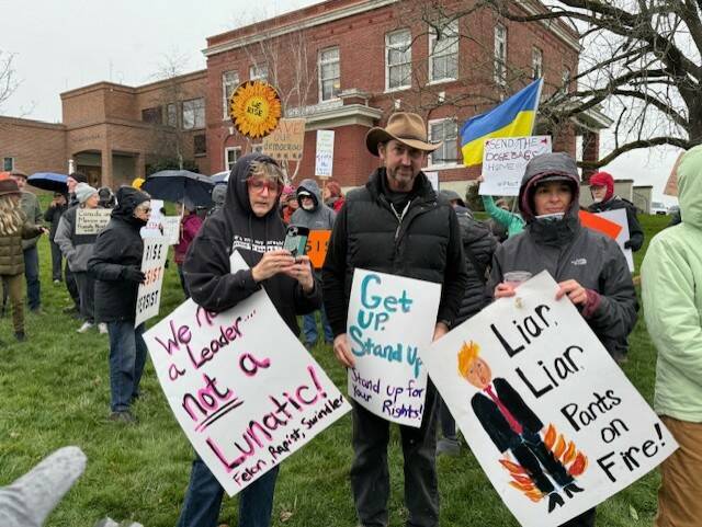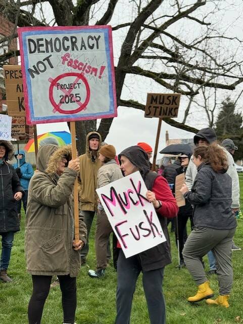 Never afraid to speak their mind, over 100 islanders stood in front of the courthouse at noon, Tuesday, March 12. Rain did not deter them from protesting against the new Department of Government Efficiency, many of President Trump’s executive orders and other moves by the administration.