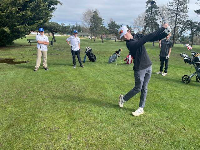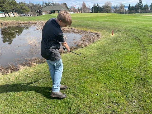 Highlights for the day were provided by a number of players. Jack Hess, Josh Spinner and Joe Anderson are no strangers to each other. They play on their respective teams but compete against each other in Washington Junior events throughout the year. All three are underclassmen but have a reputation as some of the best talent our league has to offer. They have a strong respect for each other and have become good friends competing over the years. For Tuesday’s match, the course was set up as a par 37 with three par five’s; holes one, five and nine. The birdies were flying as Hess was able to post the best round of the year with a two under 35. It included birdies on both the par 3’s. Coach Rice preaches, “Almost anything goes well with a two on the card.” To have two of them in one nine-hole match is exceptional! One shot behind was Orcas Josh Spinner with a one-under score of 36. Defending State Champion, Joe Anderson, had a tough day with the putter but still posted a respectable 39. As the season progresses, I expect all three of these players to be contenders for individual honors at this year’s State Tournament. What a treat the spectators had in watching these three superstars play our local course!