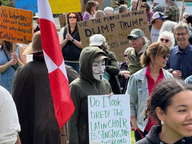 Islanders were fired up April 5 at the Hands Off protest. Well over 500, some estimates as high as 800, gathered at the courthouse lawn at noon, holding signs telling the Trump Administration to keep hands off Social Security, Medicare and Medicaid, education, libraries and parks. Signs slammed President Trump, Elon Musk, oligarchies and called everyone into action to save democracy.