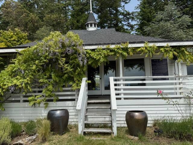 The former gift shop, seen immediately while passing by on Wold, wrapped with Wisteria, is actually a historical building. It was originally Ace Hardware in Friday Harbor, until it was moved to its current location in the 1950s or ‘60s.