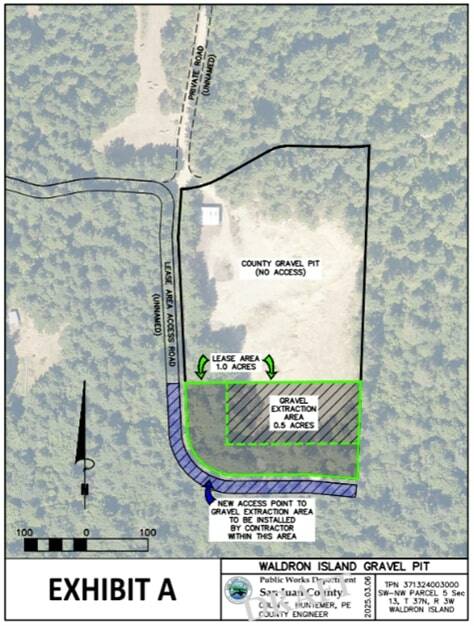 Following procedures set out in SJCC Chapter 2.104, the Public Works Department will conduct a sealed bid opening on Aug. 27 for the public sale of up to 1,000 cubic yards of bank run gravel to be extracted in accordance with all applicable laws and regulations at the Waldron Gravel Pit Lease Area.