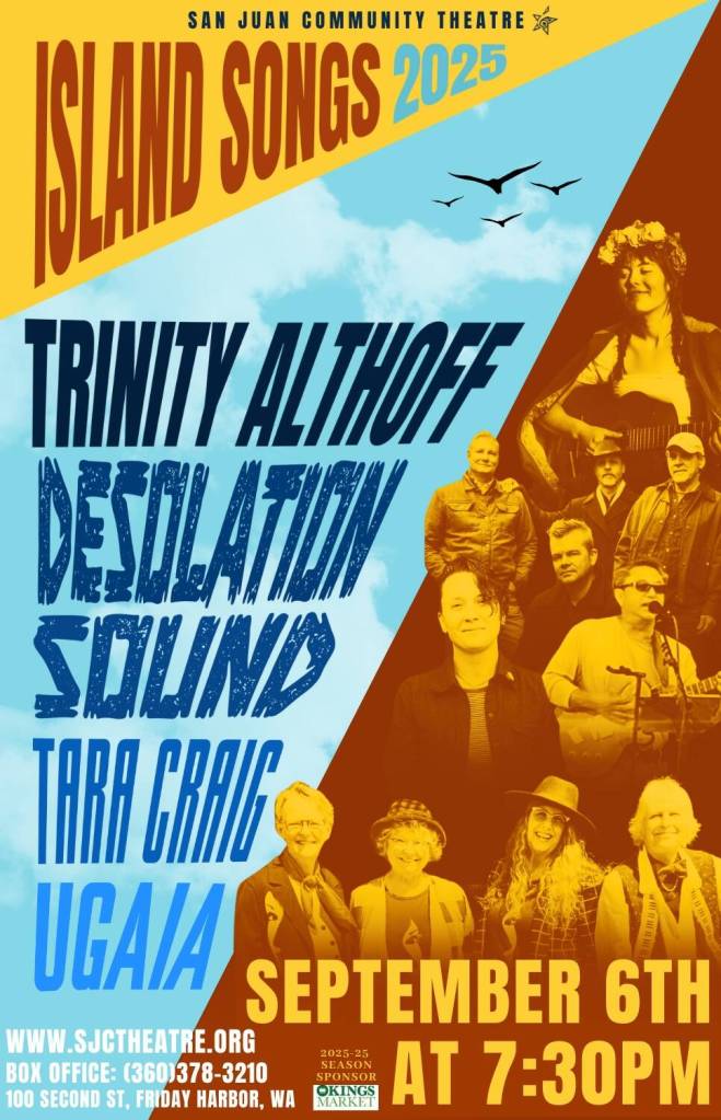 Celebrate local musical talent Sept. 6 with Island Songs at the San Juan Community Theatre. Fan favorites Desolation Sound, Tara Craig, UGAIA and Trinity Althoff will all be in one location for one event and one event only.