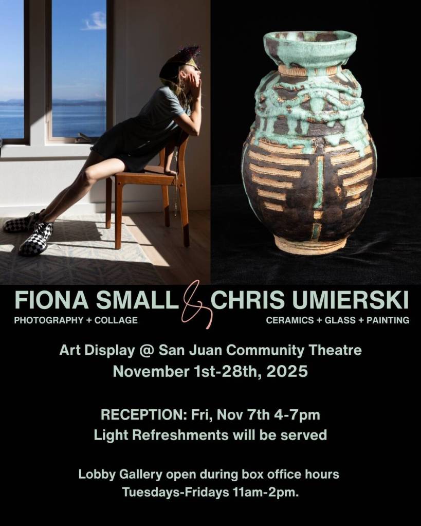Local artists Christopher Umierski and Fiona Small will be displaying their creations at San Juan Community Theatre, Nov. 1-28. A reception will be held on Friday, Nov. 7, from 4-7 p.m. for a chance to meet the artists and enjoy some light refreshments. All are welcome. The artworks will be available to view throughout the month during box office hours, Tuesdays through Fridays from 11 a.m. to 2 p.m.