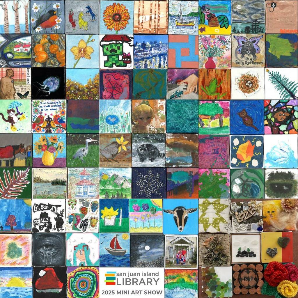 The San Juan Island Library is excited to display the artwork of the 2025 Mini Art Show. Nearly 80 canvases were submitted this year, showcasing the artistic abilities of many islanders. The art will be displayed in the library’s main salon until Jan. 4.