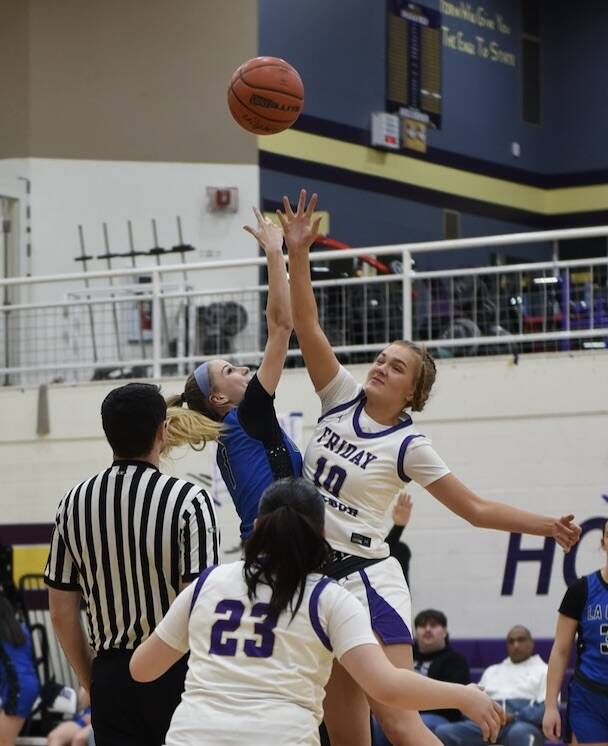 The Friday Harbor Wolverines Basketball teams played the LaConner Braves on Jan. 20 at Turnbull Gym. The boys were neck and neck for the first half with Friday Harbor slightly ahead at the half. The second half the Wolverines pulled ahead with a big scoring drive taking the win over the Braves 53-26.