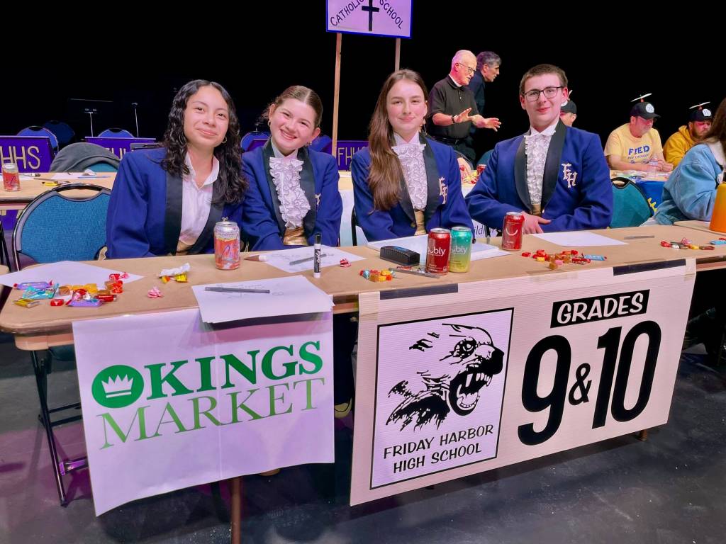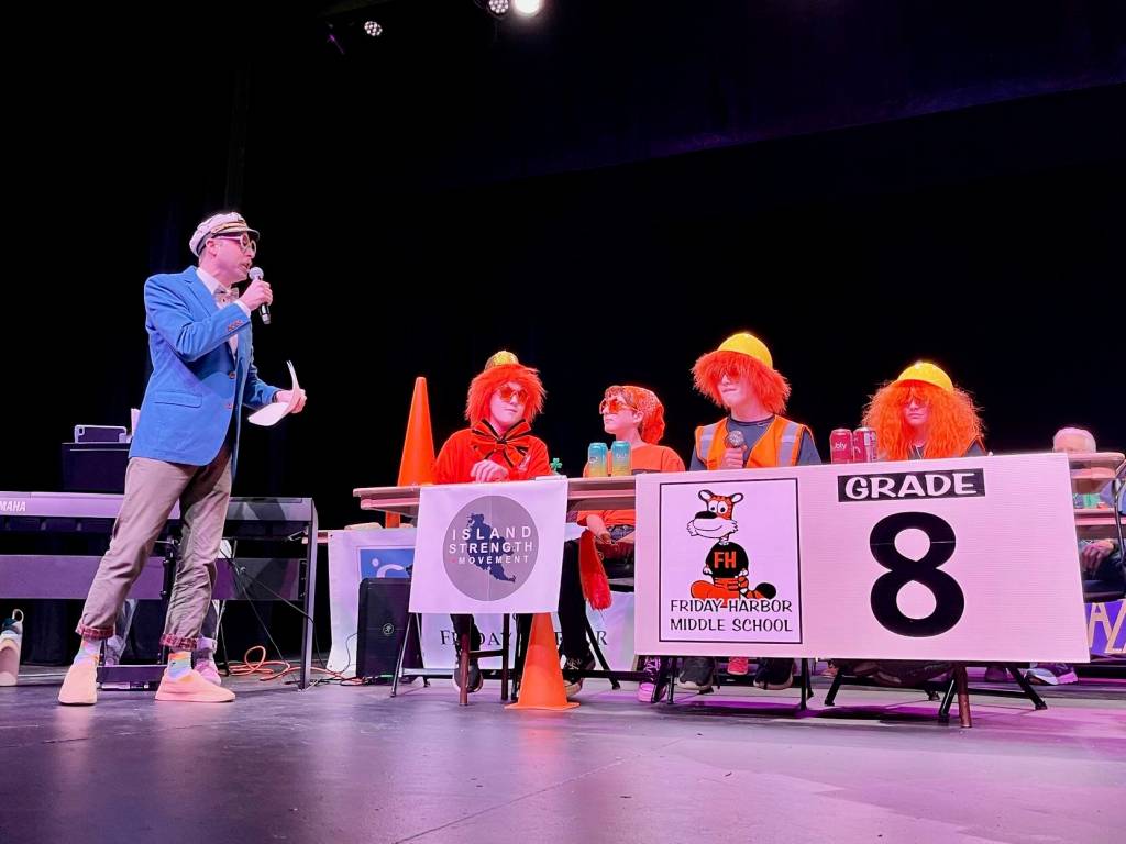Hosted by Friday Harbor High School students Alison Power and Liam DeYoung, the event features seven teams: Friday Harbor Middle School 8th graders, combined high school teams (9th–10th and 11th–12th grades), and community teams representing the Soroptimists, Rotary Club, Lions, and Kiwanis.