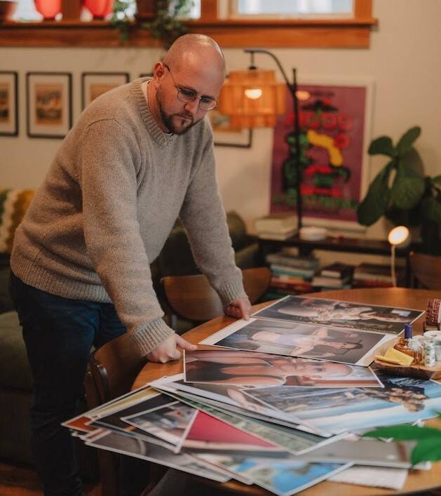 It’s surprising to read this post on Mark Burkholder’s social media and find out he’s only 36. The reasons why aren’t immediately evident — his features don’t look older than that, necessarily. But there’s a wisdom to his eyes; a grief that shouldn’t align with so few years. The profile photo of his “Caregiver’s Guide to Cancer” account shows his wife, Paige, in a hospital bed behind him. He’s in the foreground, his knuckles covering his mouth as his chin rests in his palm, geometric glasses framing eyes that tell more about him in one still than any amount of writing could.