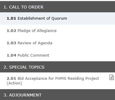 This is a quick look at the board agenda for your convenience. Please be aware that the agenda could change prior to the board meeting.