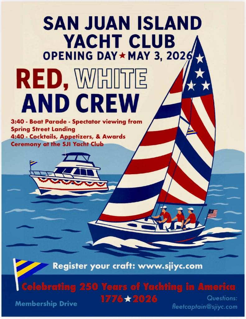 The San Juan Island Yacht Club would like to invite your organization to participate in our annual Opening Day Boat Parade “Red, White and Crew – Celebrating 250 Years of Yachting in America” on Sunday, May 3 in the Port of Friday Harbor. (See attached poster and club announcement). The event is much like the 4th of July parade, just on the water. Participation can be a real treat for your staff and volunteers and is a great way to get visibility for your organization in front of the larger community.