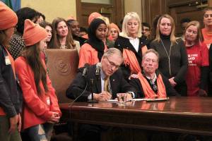 A controversial gun control bill to ban bump stocks was signed into law by Governor Jay Inslee.