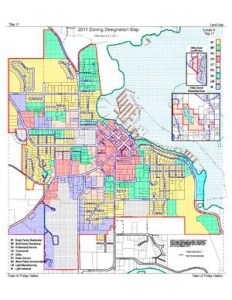 Map of Friday Harbor land-use zones; light industrial is marked in light blue.