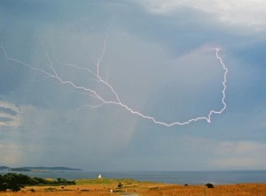 An electrical storm in the early morning hours of Friday the 13th delivered a devastating blow to a 80-foot tall Douglas Fir on Lopez Island