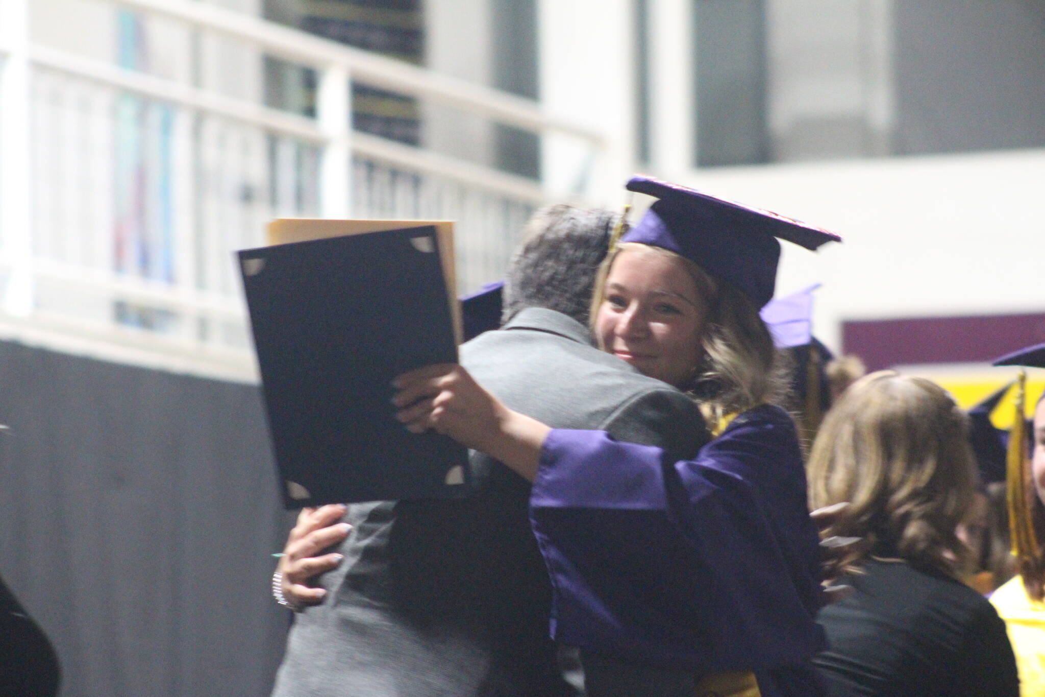 “The class of 2024 is one of my all-time favorites,” Mary Smith, a substitute teacher who has been at the district for years said. “So much energy, personality and intelligence.” Smith was awarded a $1,000 bonus for meeting her teaching day quota of over 100 days. Smith announced she was sharing the funds with two students, Aldo Valencia and Dylan Mughal. Altogether, the class of 67 students won a record-breaking half million dollars in scholarships.