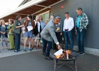 On May 24, San Juan Islands Museum of Art board members held a celebratory burning of the mortgage papers after an anonymous donor contributed to paying off the debt of their building earlier than expected.