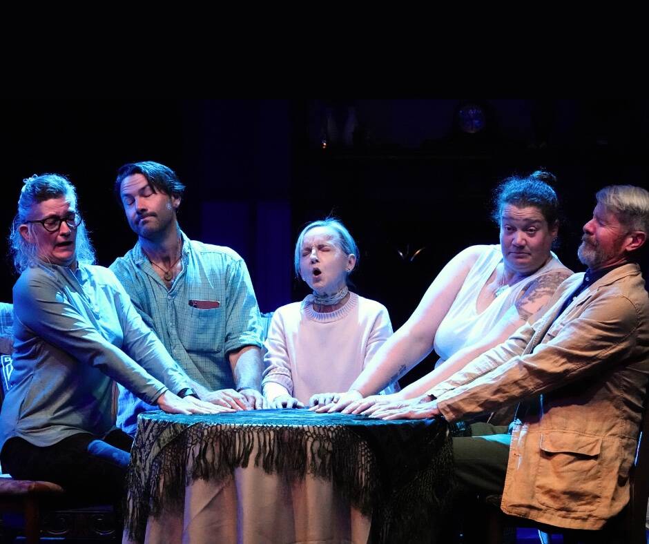 Charles and his second and current wife, Ruth, played by Corinne Morrell, invite local eccentric medium Madame Arcati, played by Heather Mueller, to hold a seance.. Charles invites his friends, Dr. and Mrs. Bradman (Scott Mapstead and Amy Hull), for character inspiration from Madame Arcati for his latest book. The seance is first deemed a failure. Slowly and surely, however, it becomes obvious Madame Arca has brought Elvira into the Condomomine household. Unable to be seen or heard by Ruth, Elvira takes advantage of the situation and mischievously creates trouble between the married couple. The shenanigans go off rails when Elvira unwittingly causes Ruth’s death, resulting in Charles being haunted by both of his now-deceased wives.