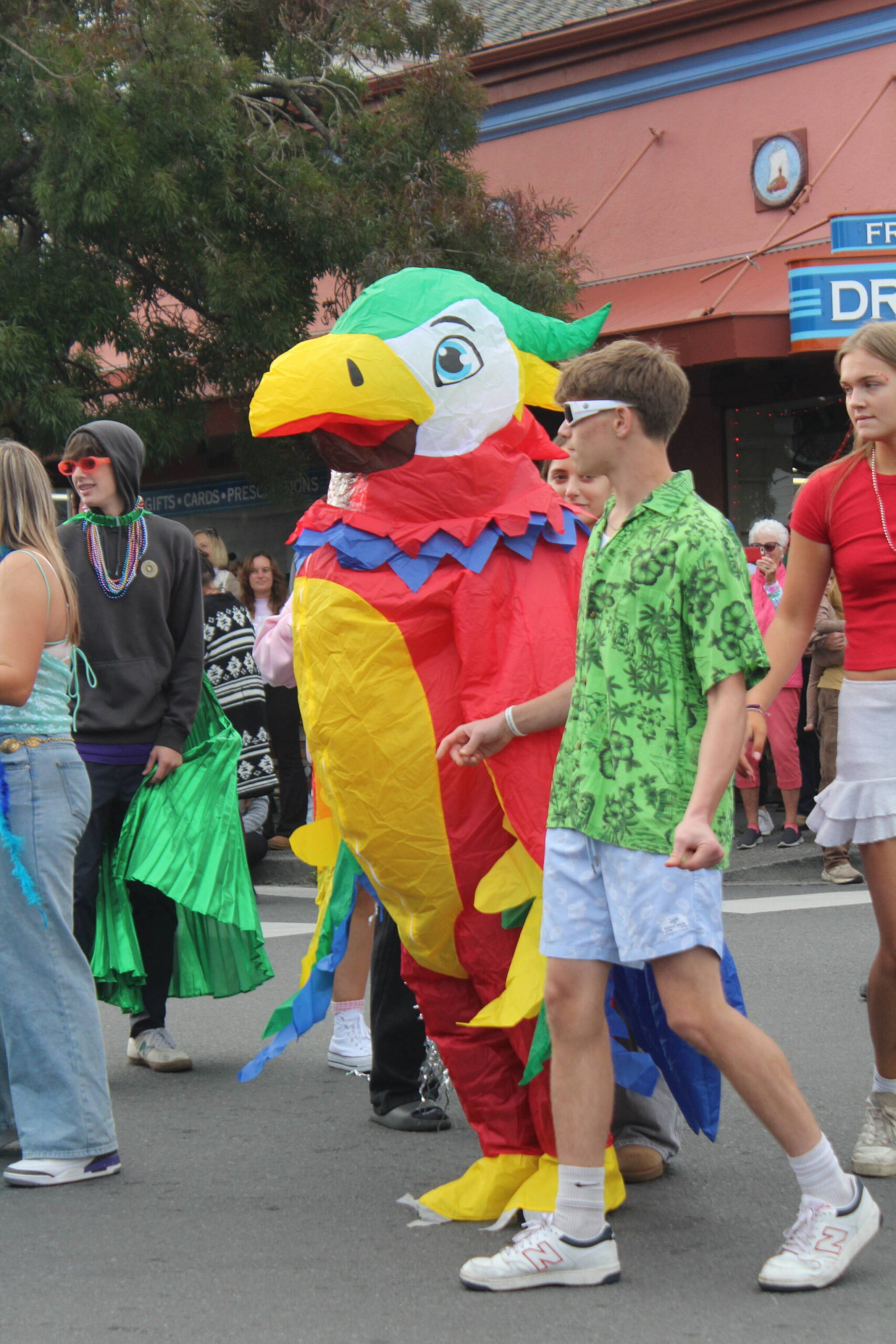Each class chose a movie as a theme. Freshmen opted for the ‘Titanic,” and decorated their float as the infamous ship. They danced to Vanilla Ice’s “Ice Ice Baby.” Sophmores were “Men in Black,” and had green aliens amongs the black suited agents. Juniors depicted the tropical paradise of “Rio,” with parrots and palm trees. Seniors were ‘The Lorax.” The Onceler stood on the float holding his ax while the Lorax stood nearby, ready to speak for the trees.
